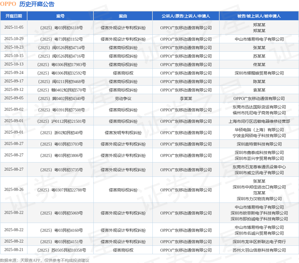 本站消息,根据天眼查APP显示,近日公布了一则OPPO广东移动通信有限公司作为原告/上诉人的开庭公告,详细内容如下:
